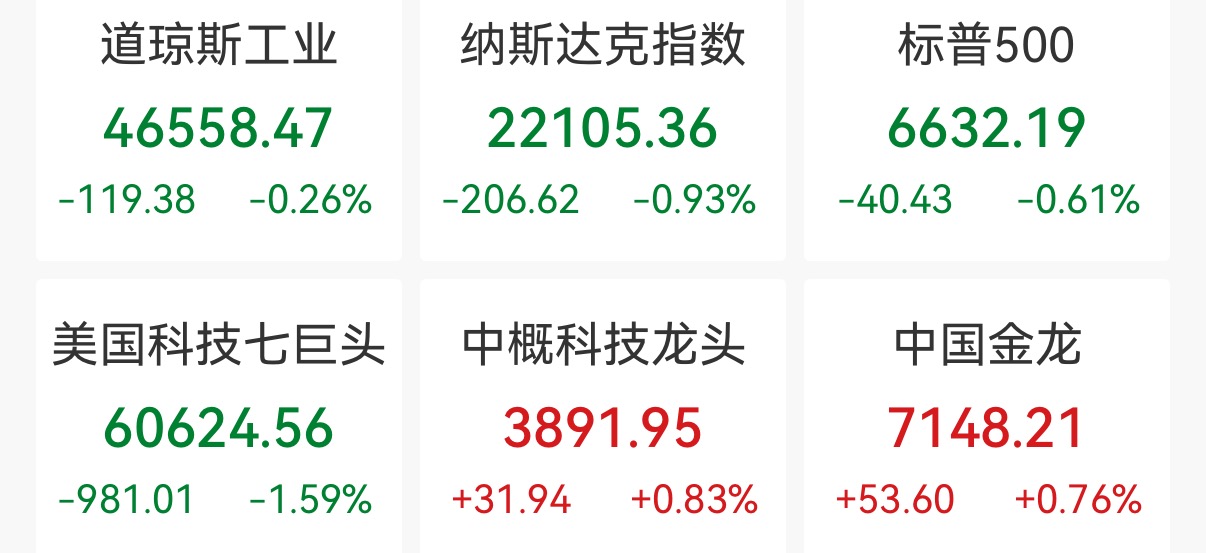 中新经纬3月14日电好意思东期间周五,好意思股三大指数全线收跌。说念指跌0.26%报46558.47点,纳指跌0.93%报22105.36点,标普500指数跌0.61%报6632.19点。